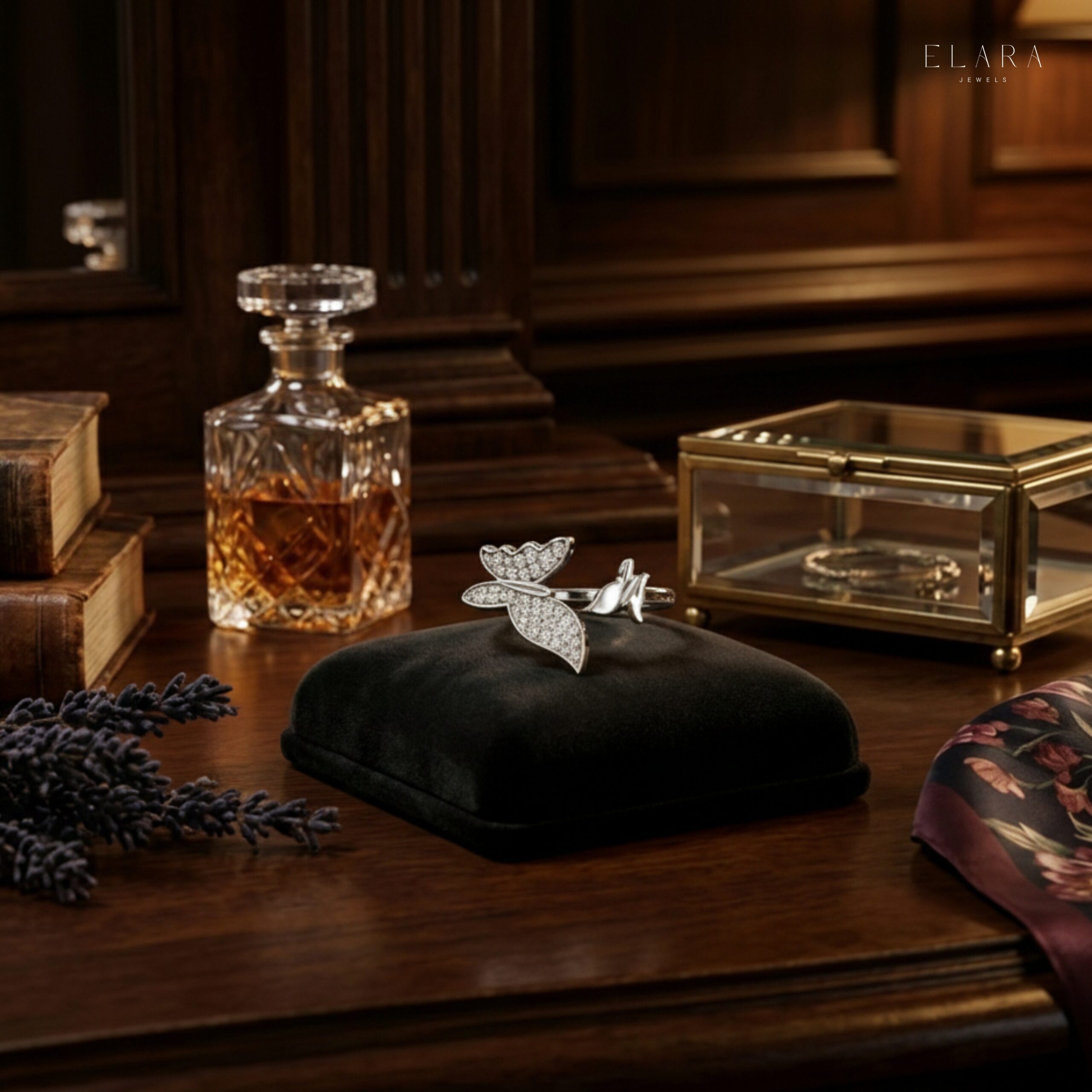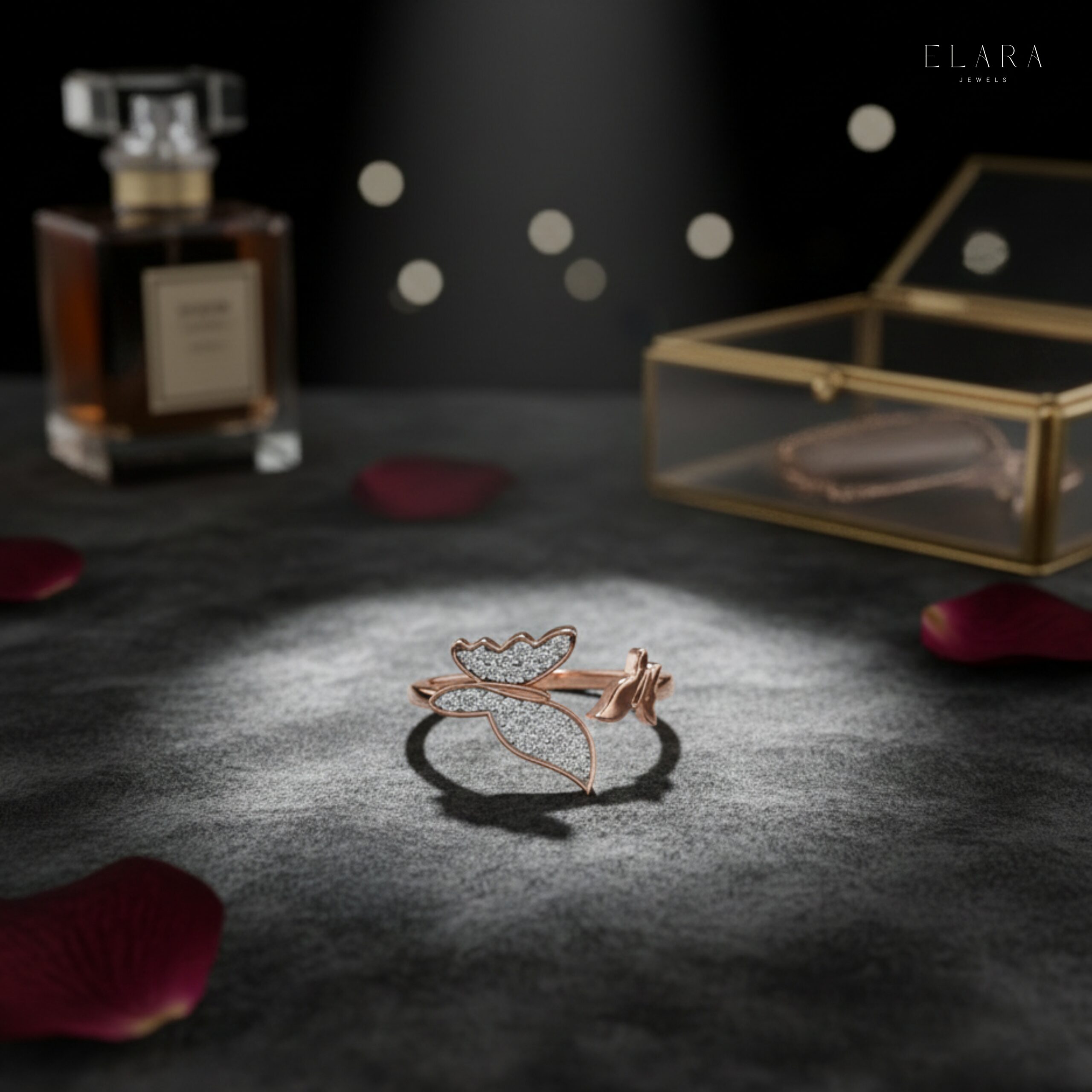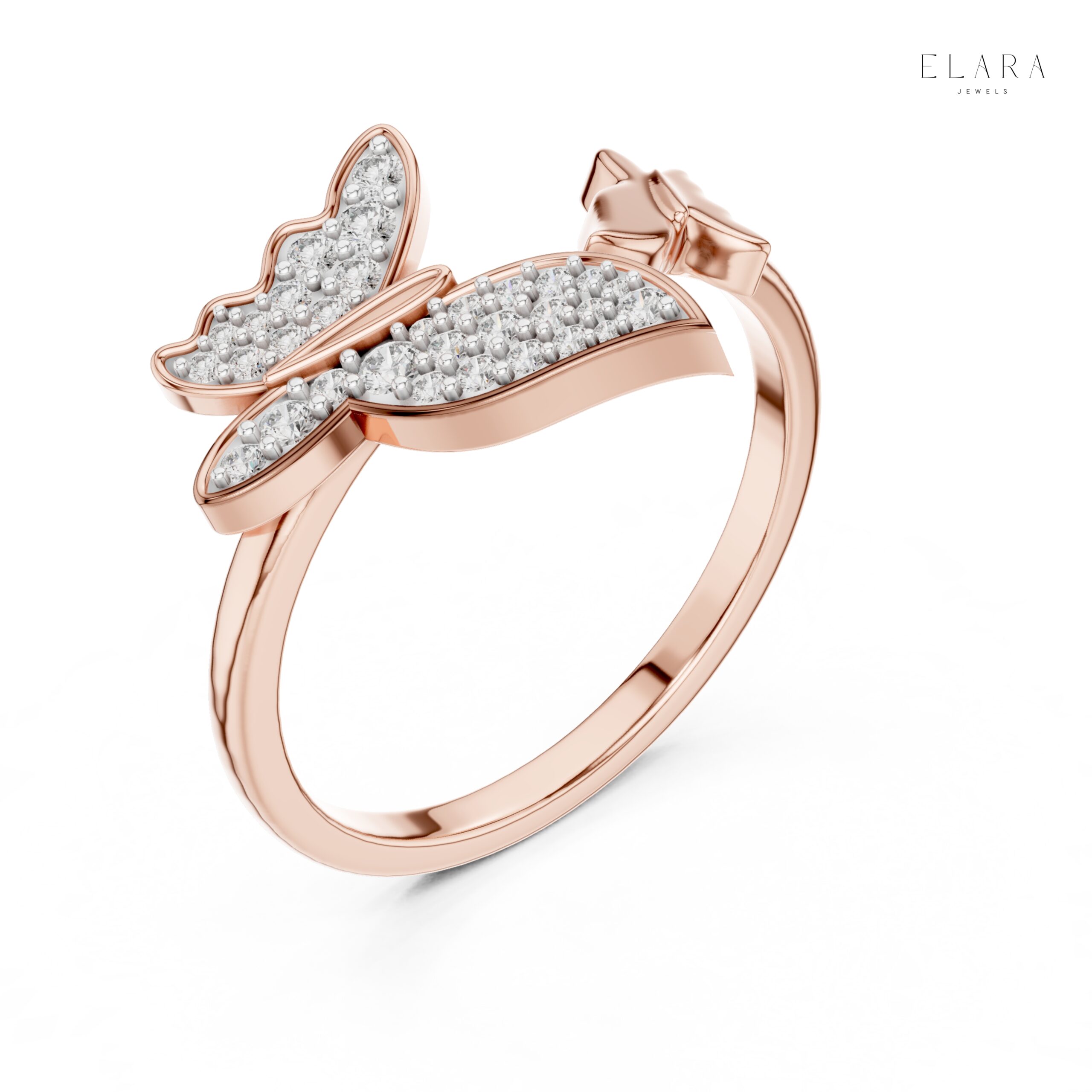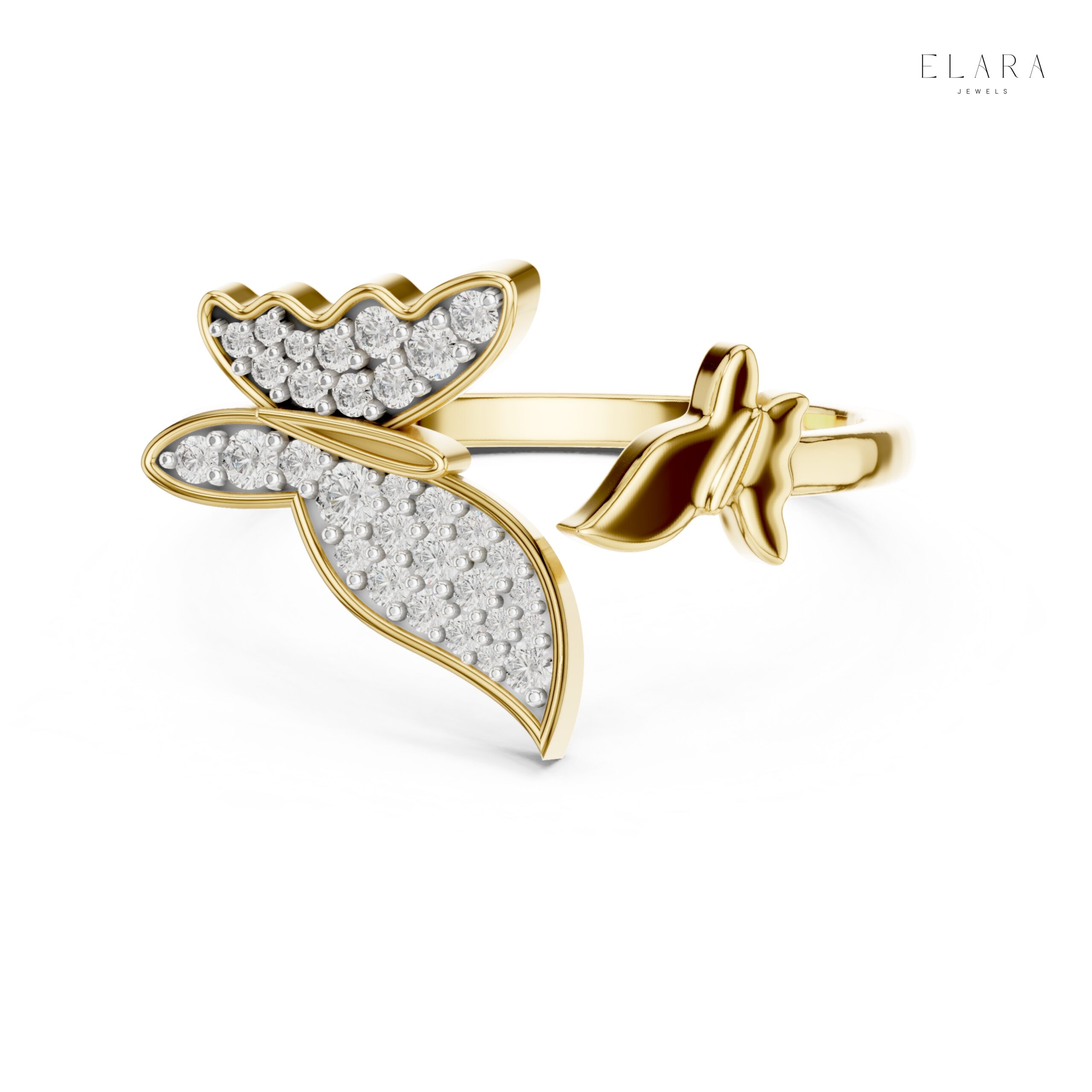 This exquisitely handcrafted Butterfly Wrap Moissanite Ring blends delicate femininity with sparkling elegance. Designed with a graceful double-butterfly silhouette, the ring features two beautifully sculpted wings—one fully pavé-set with shimmering moissanite stones and the other polished to a smooth, reflective shine. The open-wrap design gives the ring a soft, airy look while offering comfortable wear for everyday elegance.