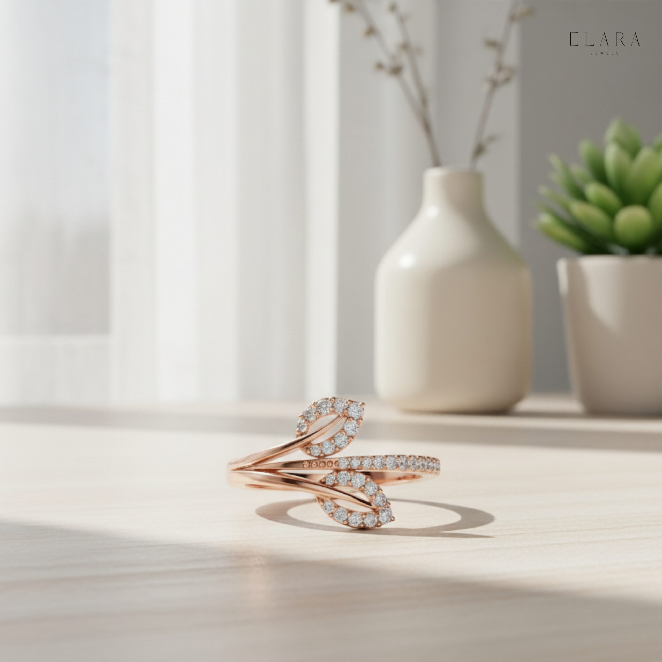 Double Leaf Diamond Ring – Wrap Around Band, Dainty Promise Ring for Her