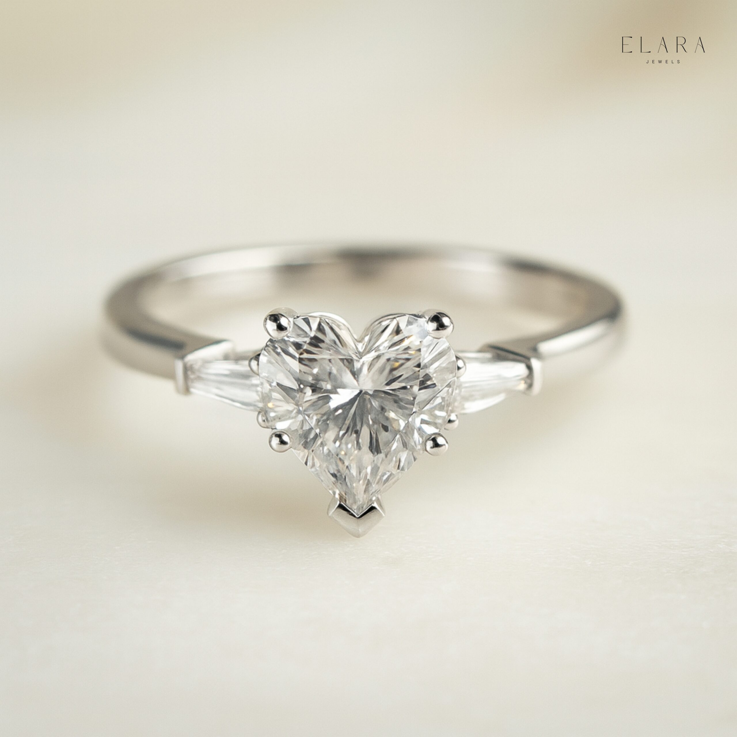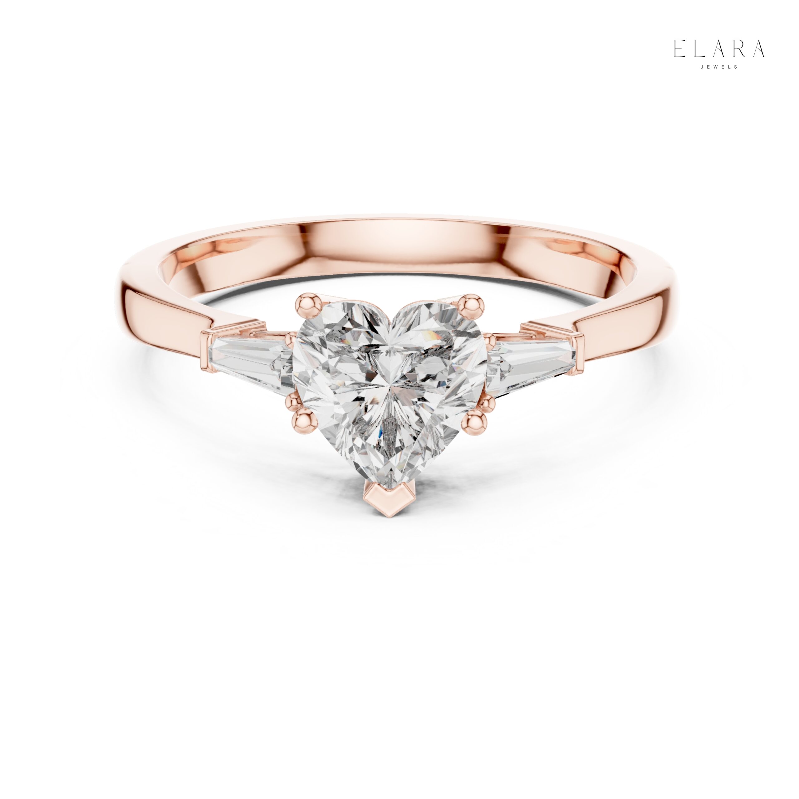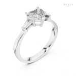 This beautifully handcrafted Heart Cut Three-Stone Moissanite Ring blends timeless romance with modern sophistication. The centerpiece features a stunning 6.50×6.30 mm heart-shaped stone, accented by two tapered baguette moissanites that create an elegant, elongated silhouette. Designed for exceptional brilliance and daily comfort, this ring is a perfect expression of love, commitment, and refined luxury.