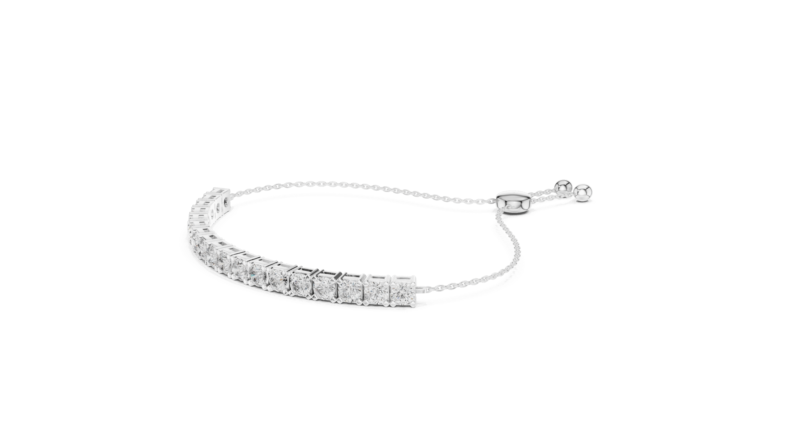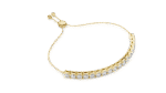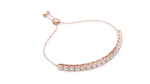 our Liora Bracelet, a stunning adjustable moissanite tennis bracelet crafted in 14K rose gold plating over fine 925 sterling silver.