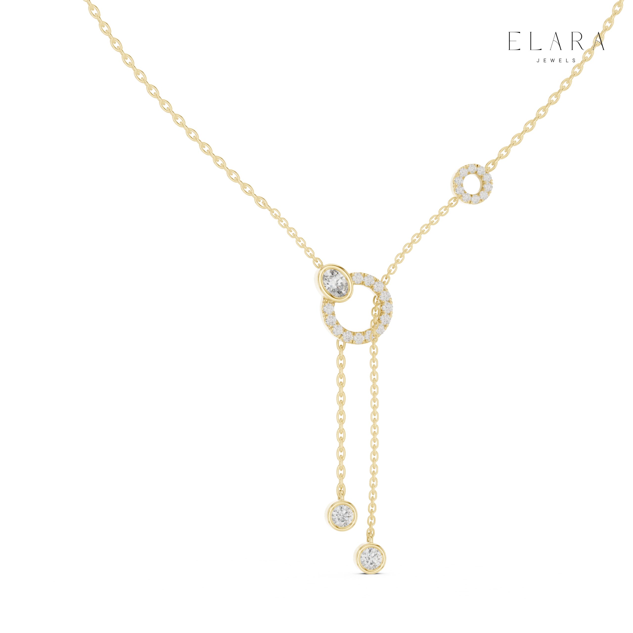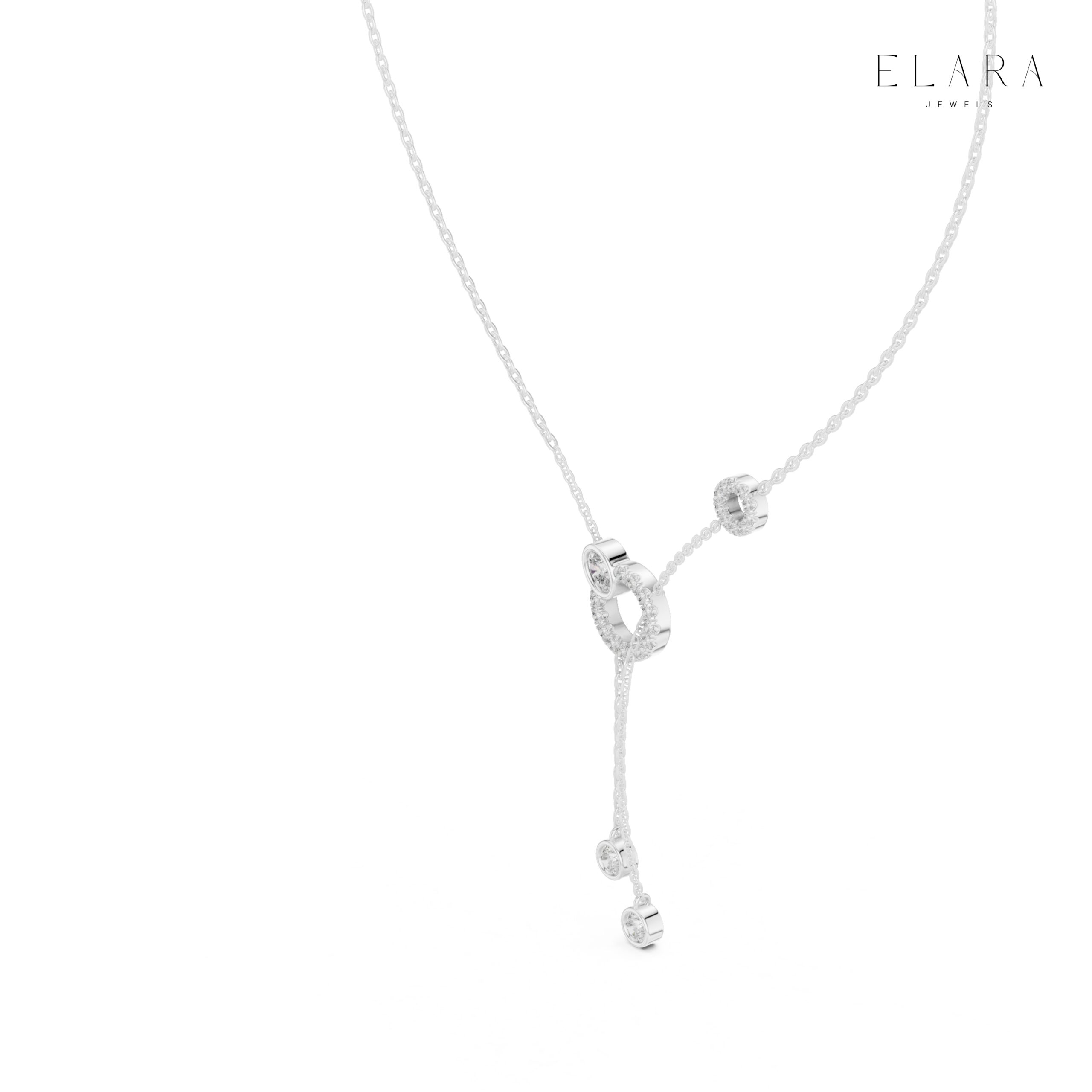 These beautifully crafted Circle Drop Moissanite Lariat Necklaces bring a touch of modern elegance to your everyday style. Designed with a sleek Y-shaped silhouette, the necklace features handset moissanites arranged across shimmering circular motifs for maximum sparkle.