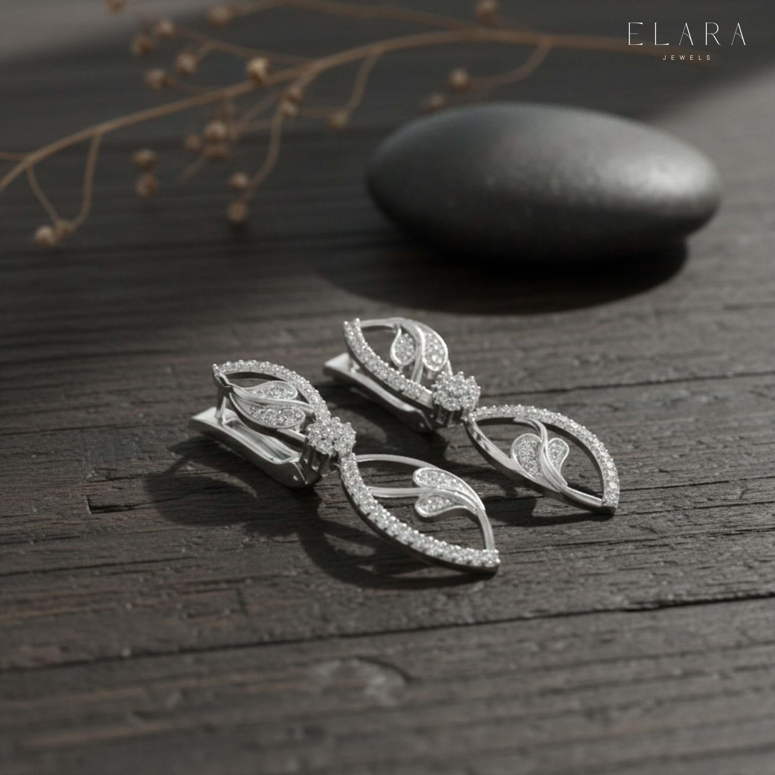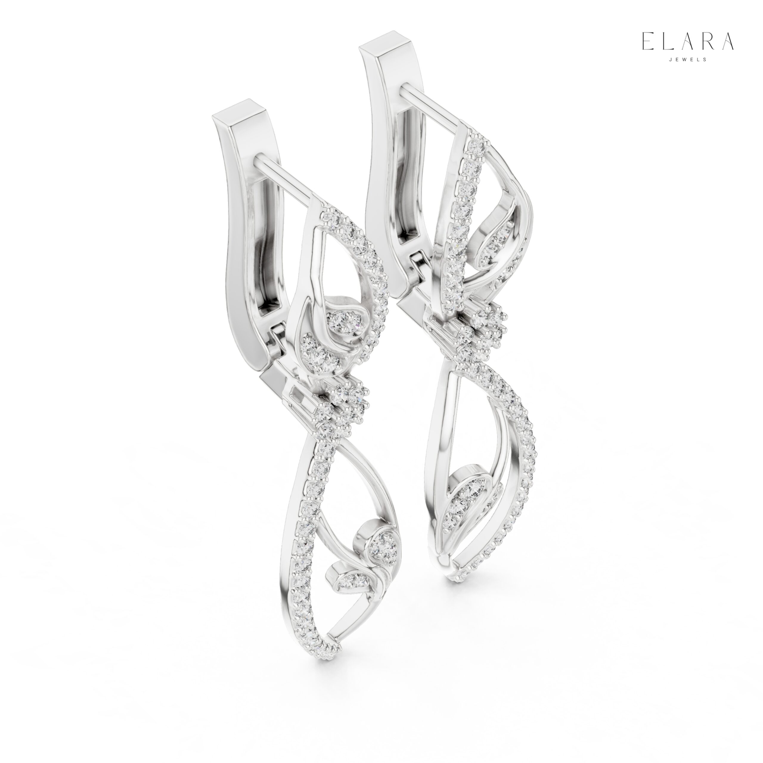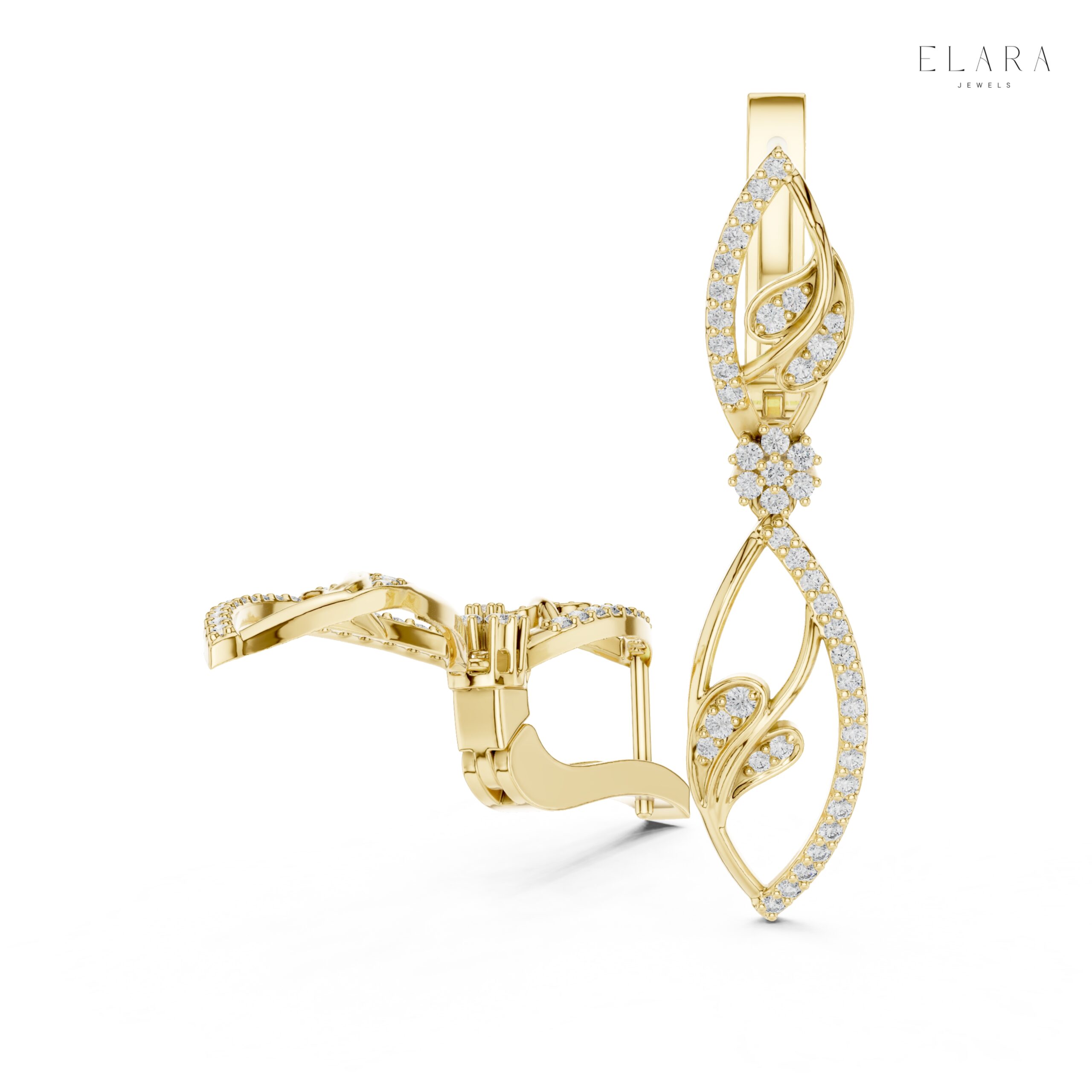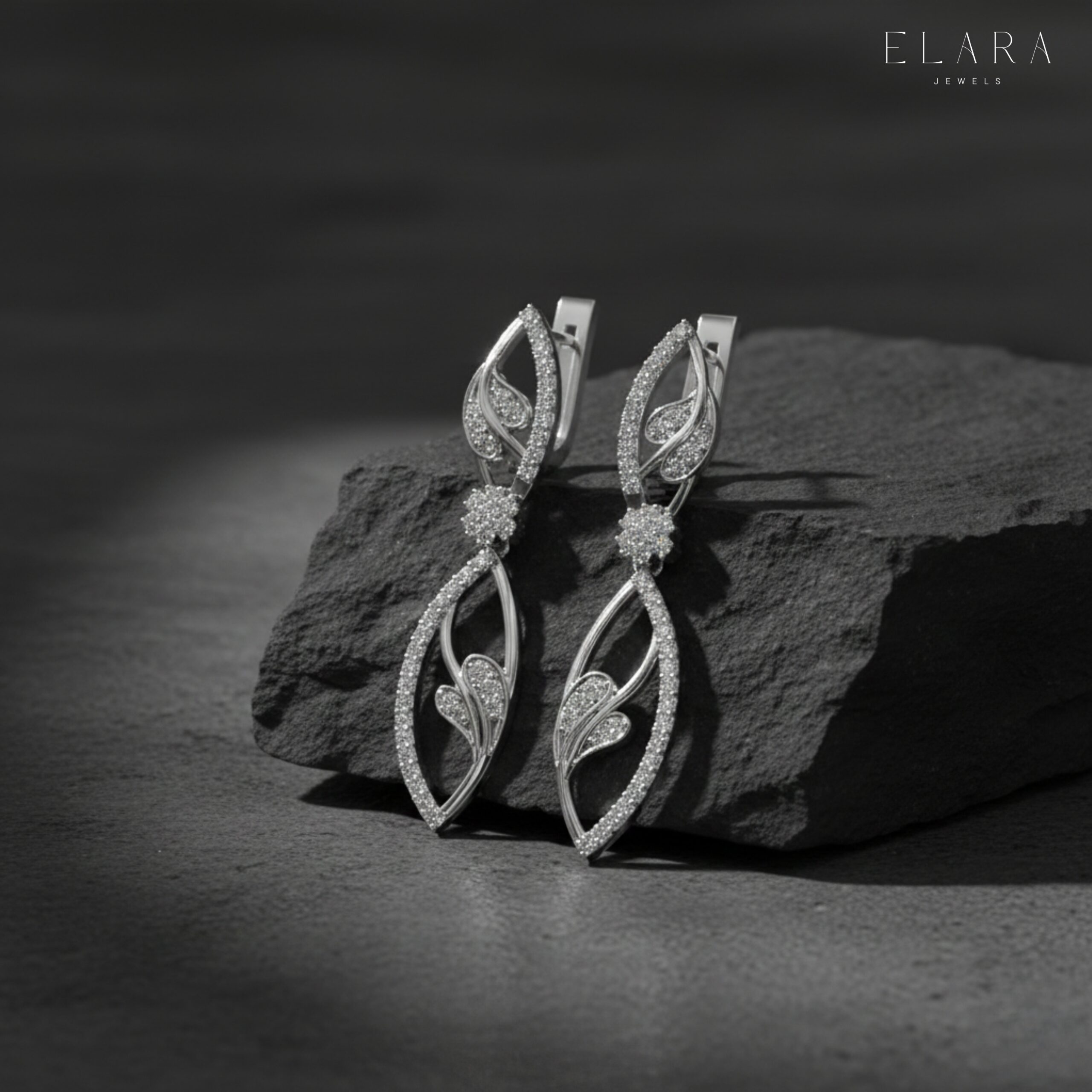 These stunning Long Leaf Drop Moissanite Earrings combine elegant curves with botanical artistry. Featuring a double-leaf flowing silhouette, each earring is meticulously handset with 88 premium round brilliant moissanites in a mix of pavé, prong, and collet settings.