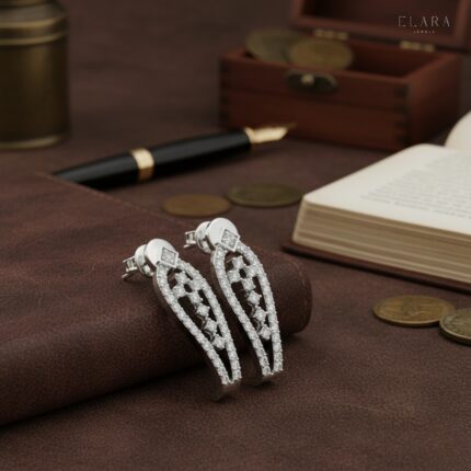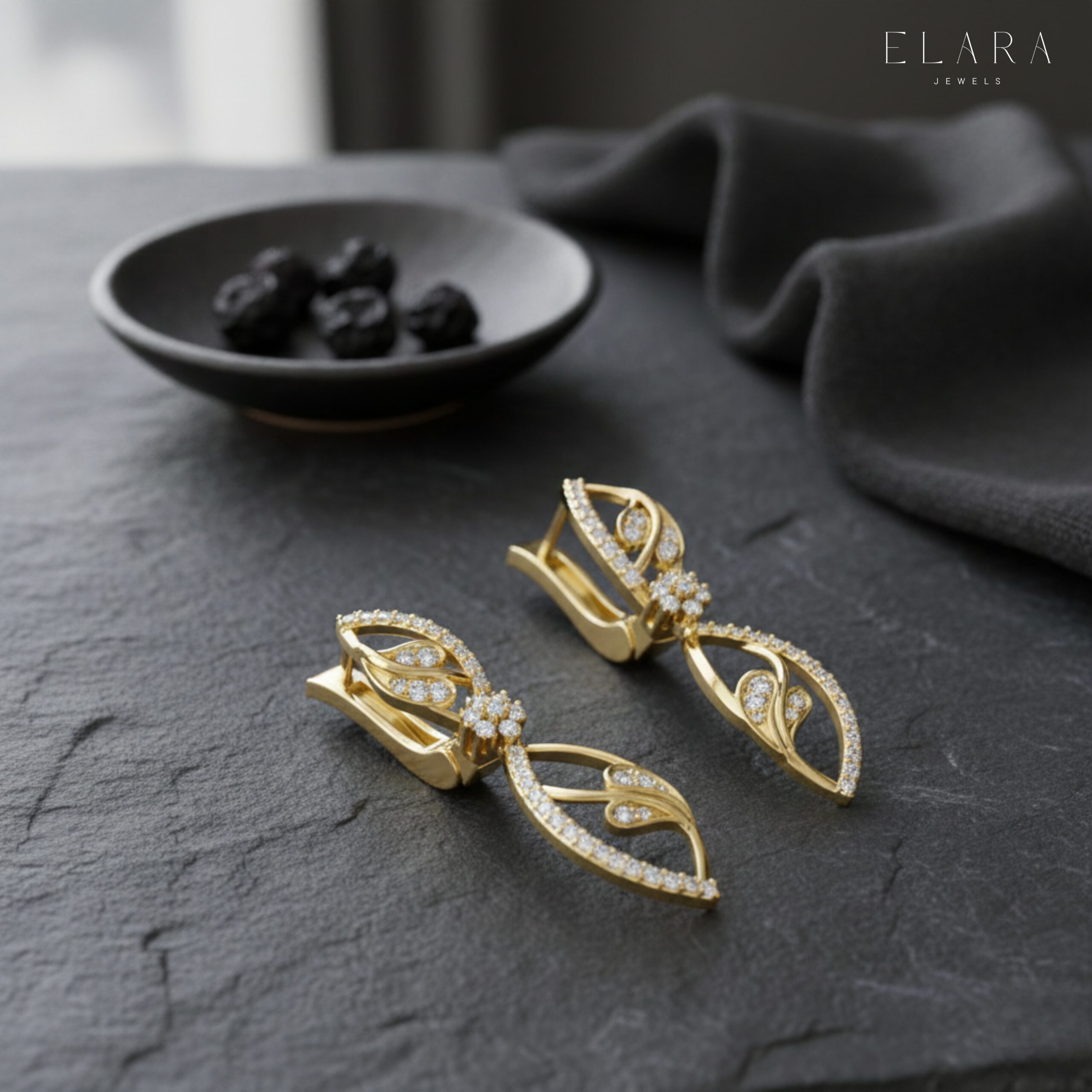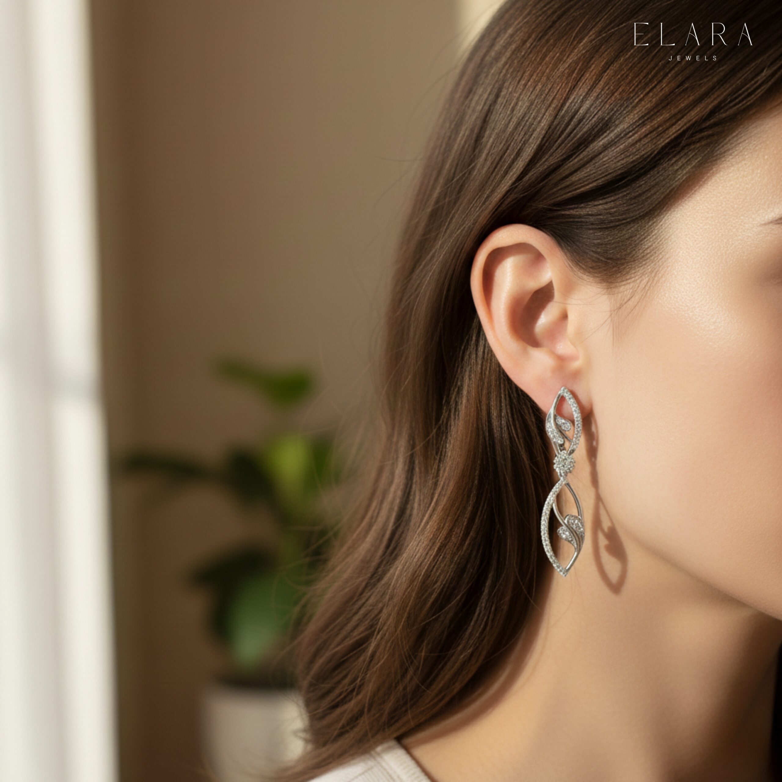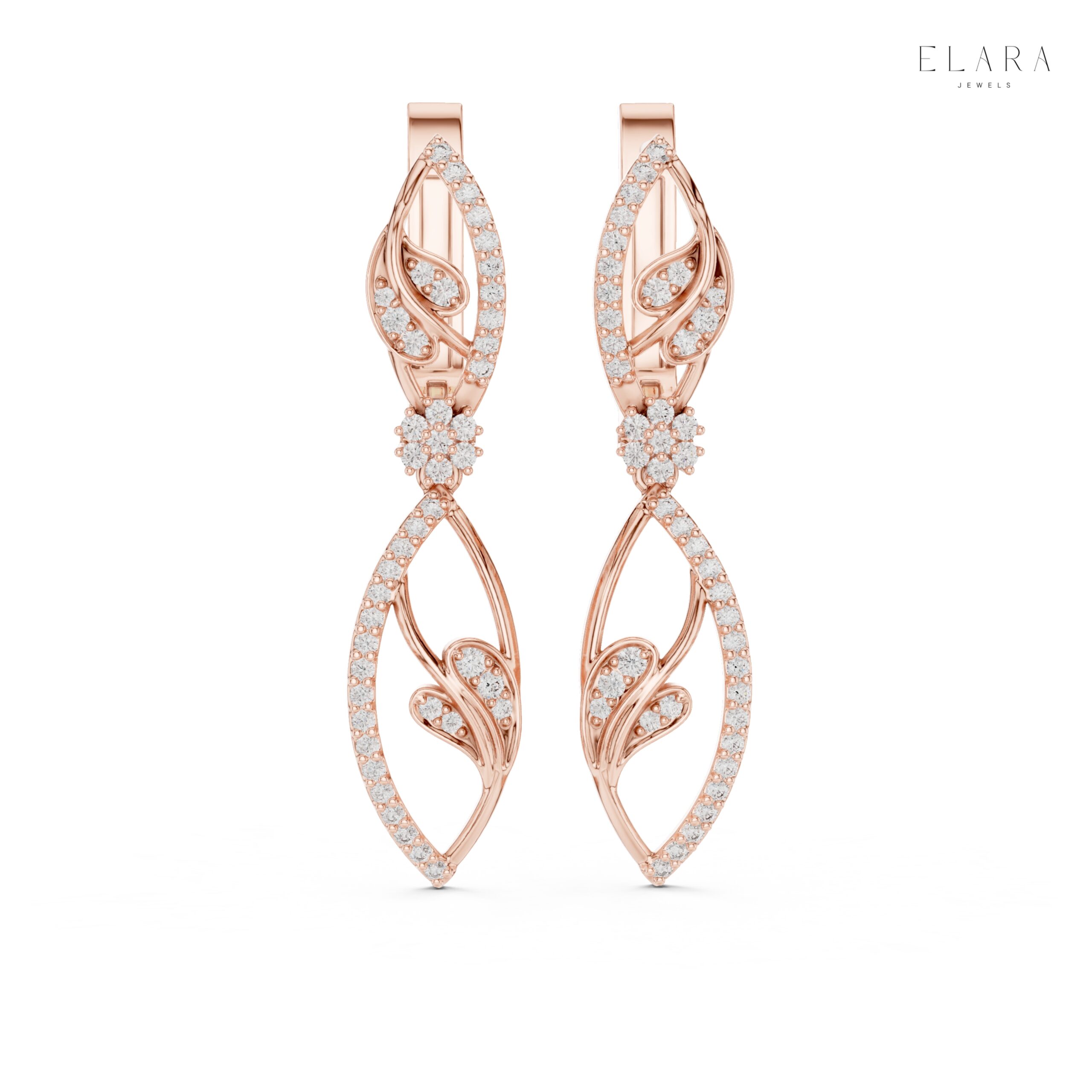 These stunning Long Leaf Drop Moissanite Earrings combine elegant curves with botanical artistry. Featuring a double-leaf flowing silhouette, each earring is meticulously handset with 88 premium round brilliant moissanites in a mix of pavé, prong, and collet settings.