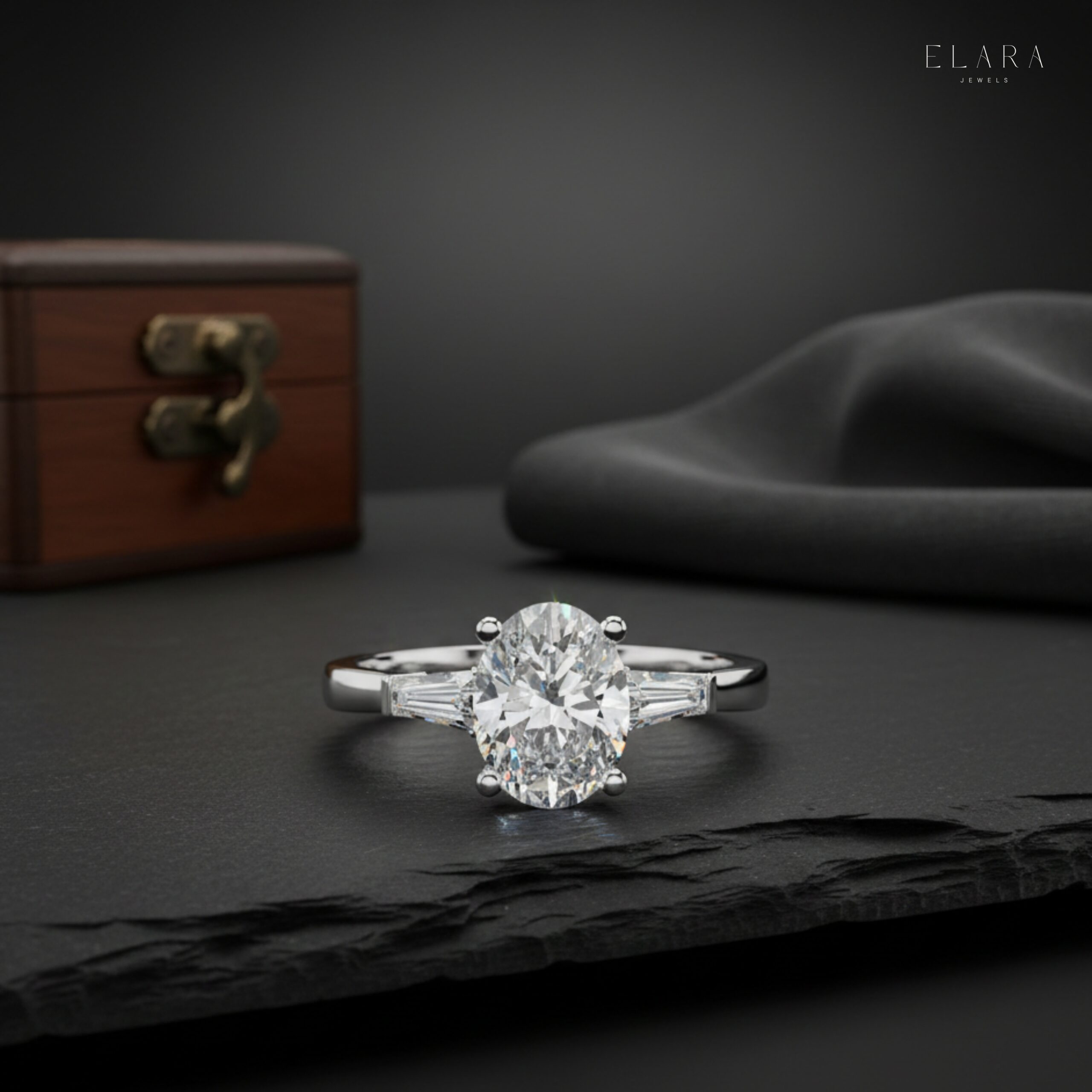 Be the first to review “Oval Moissanite Engagement Ring with Baguette Side Stones | Luxury Bridal Promise Ring” Cancel reply