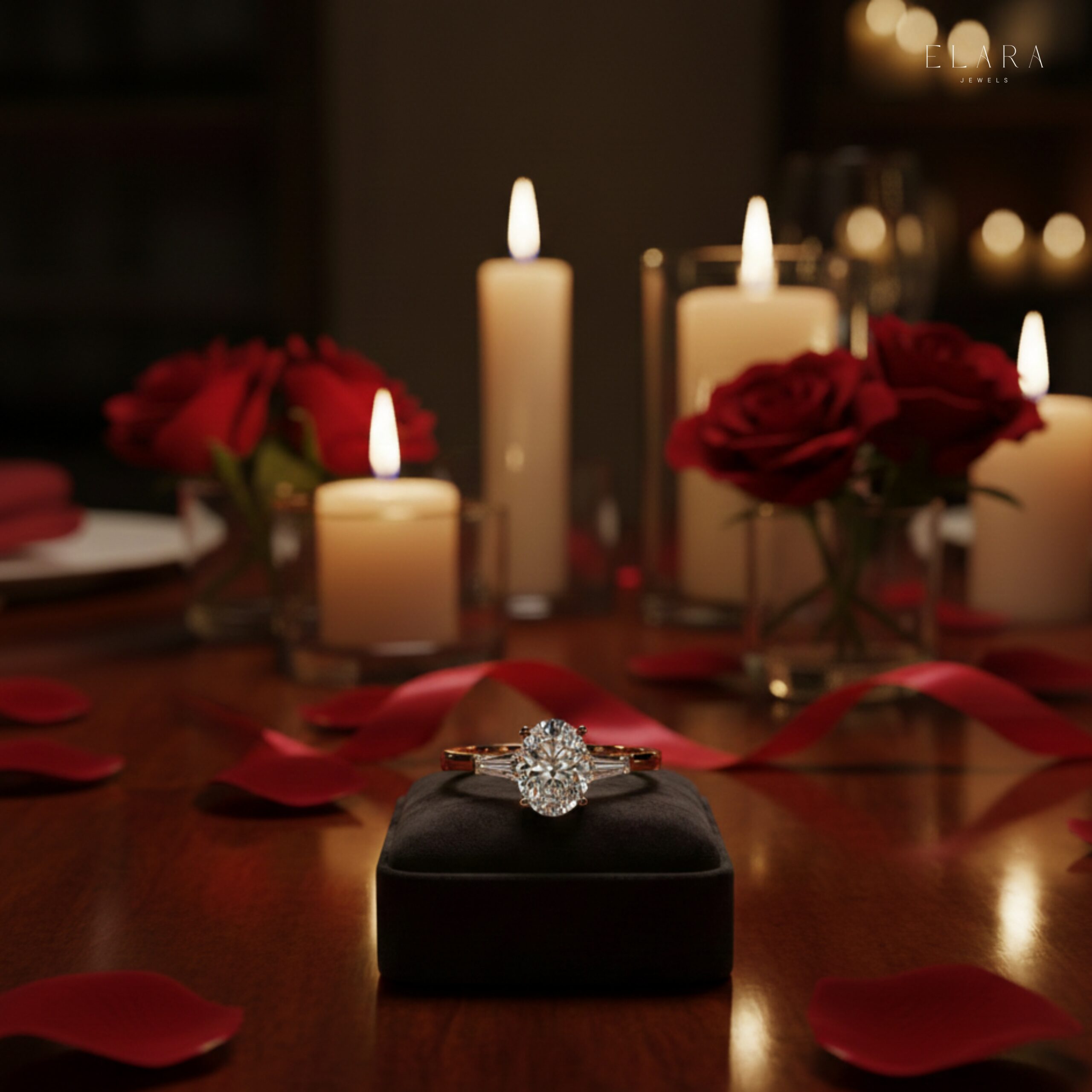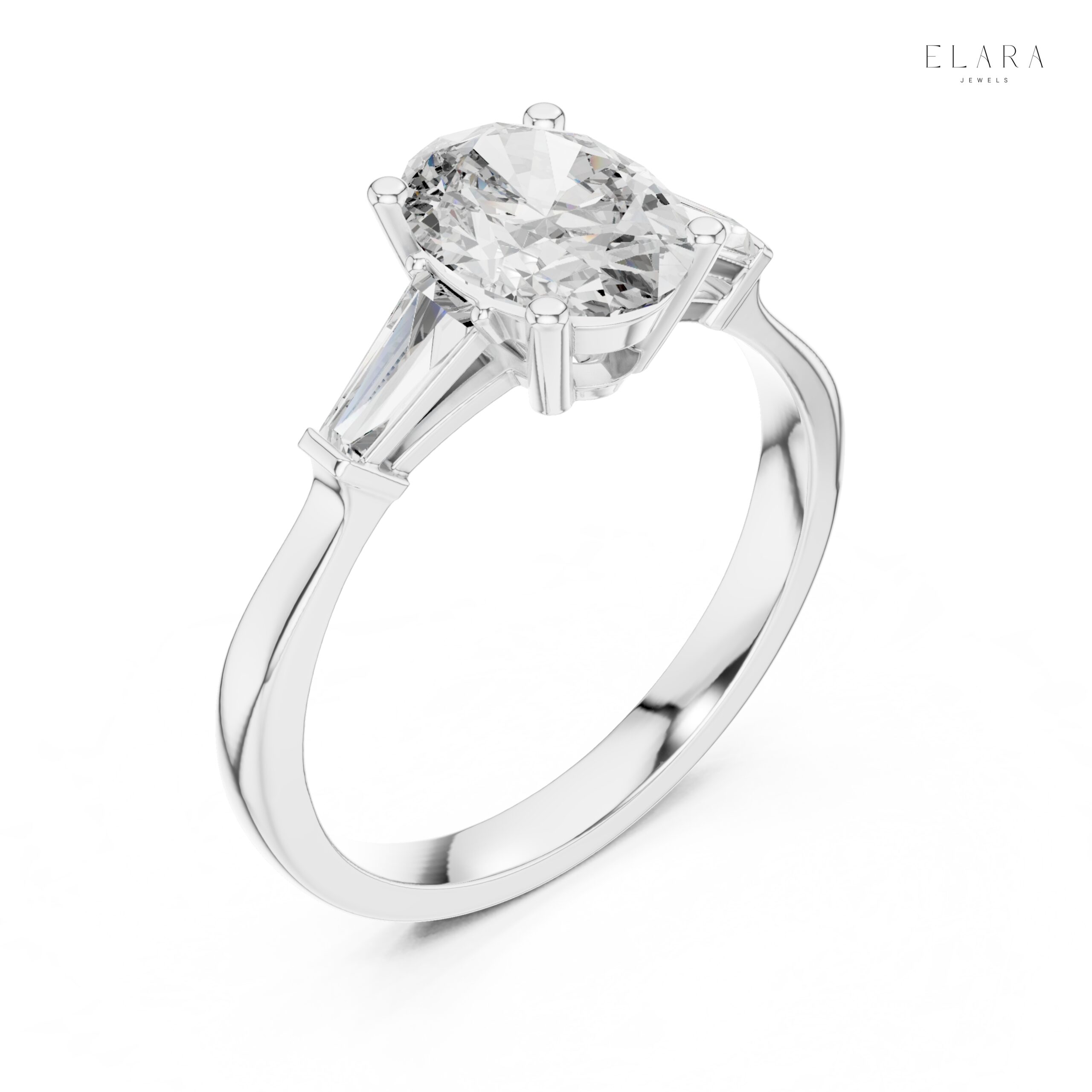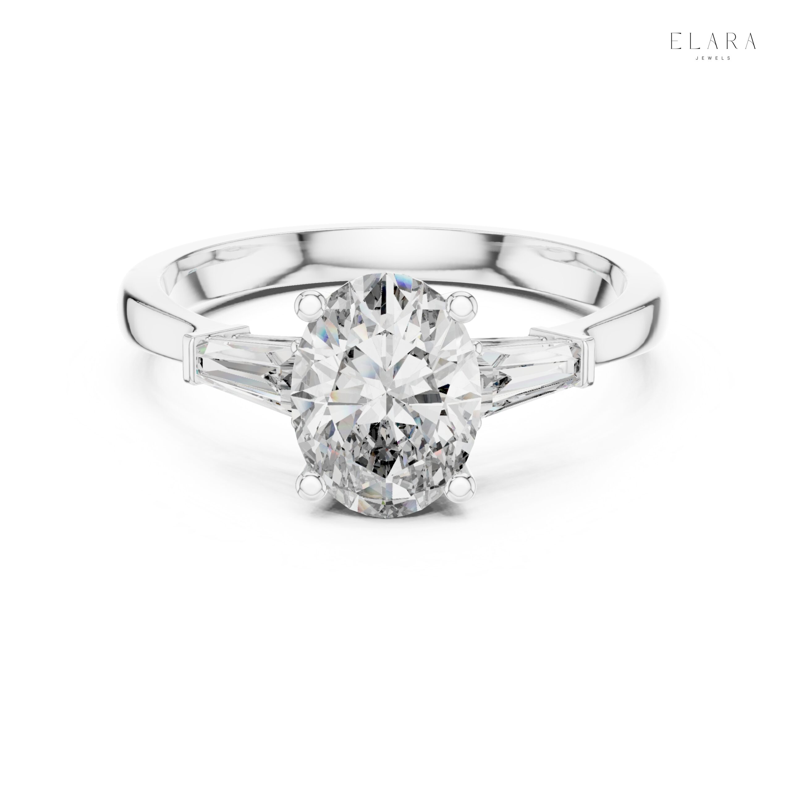 Oval Moissanite Engagement Ring with Baguette Side Stones | Luxury Bridal Promise Ring