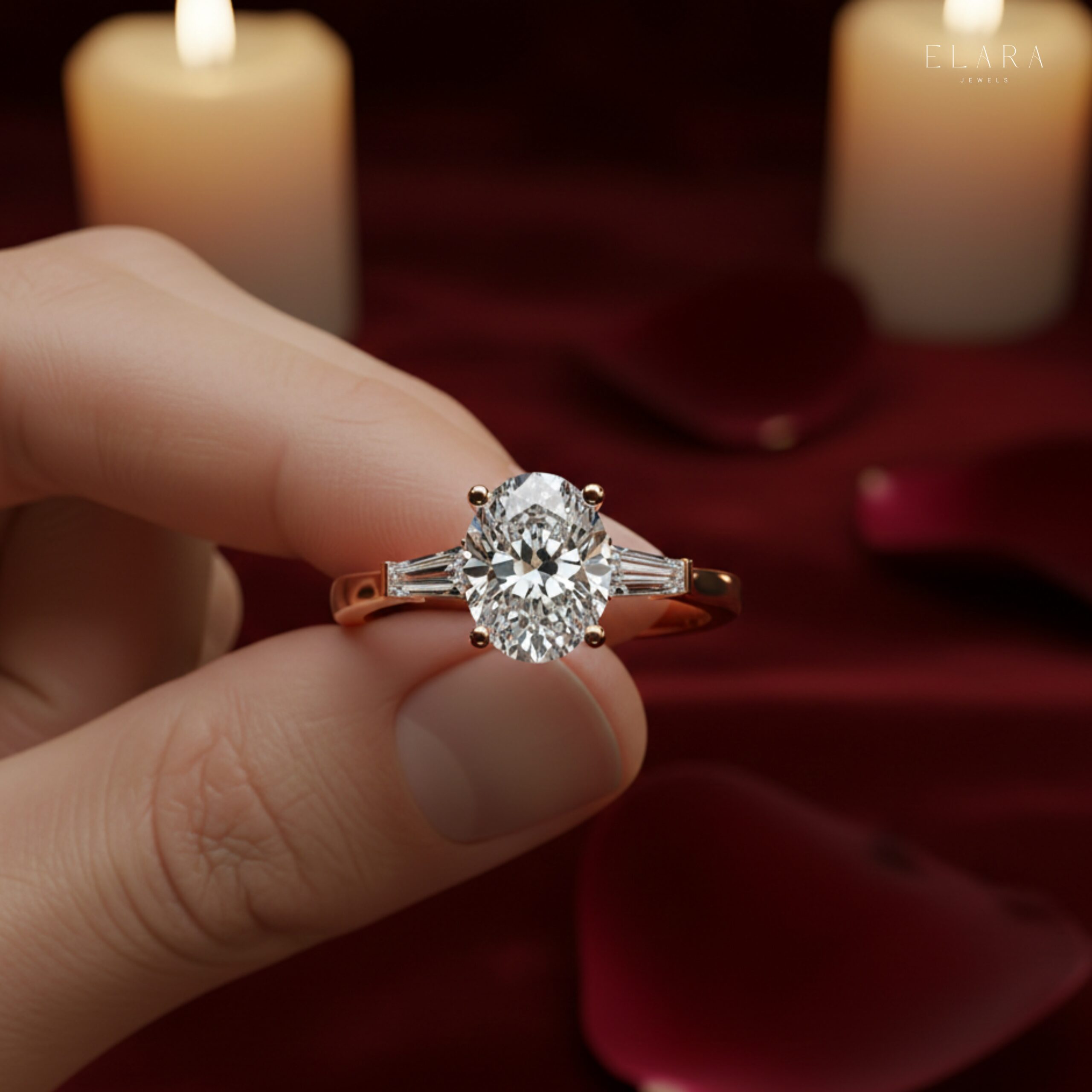 ⟡ Style: Oval Solitaire with Baguette Side Accents