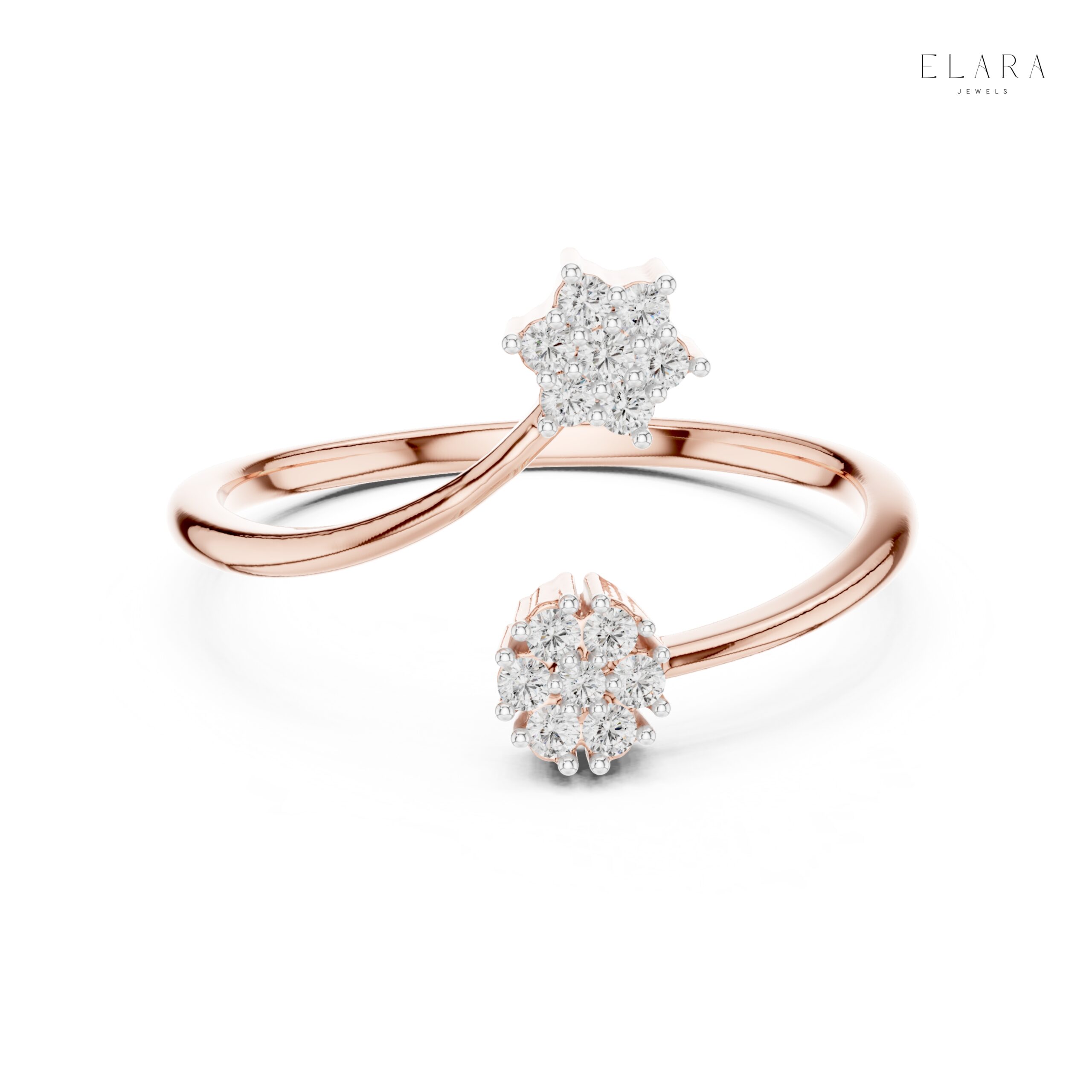 Double Leaf Diamond Ring – Wrap Around Band, Dainty Promise Ring for Her