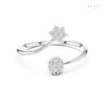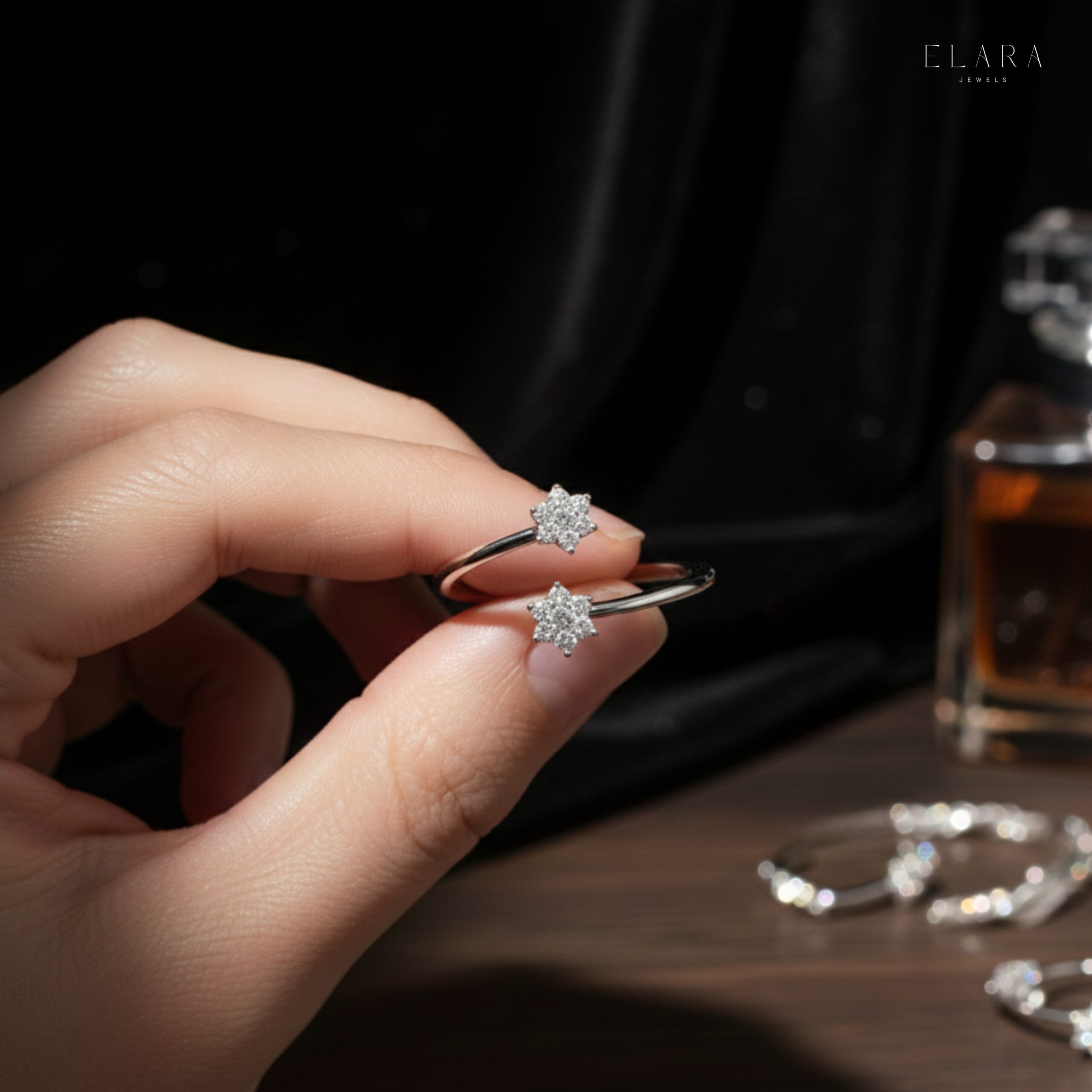 This exquisitely handcrafted Double Cluster Wrap Moissanite & Diamond Ring blends modern elegance with a soft, nature-inspired silhouette. Designed with two sparkling floral clusters that wrap gracefully around the finger, this ring showcases 14 handset brilliant-cut stones arranged in a radiant pavé-style cluster.